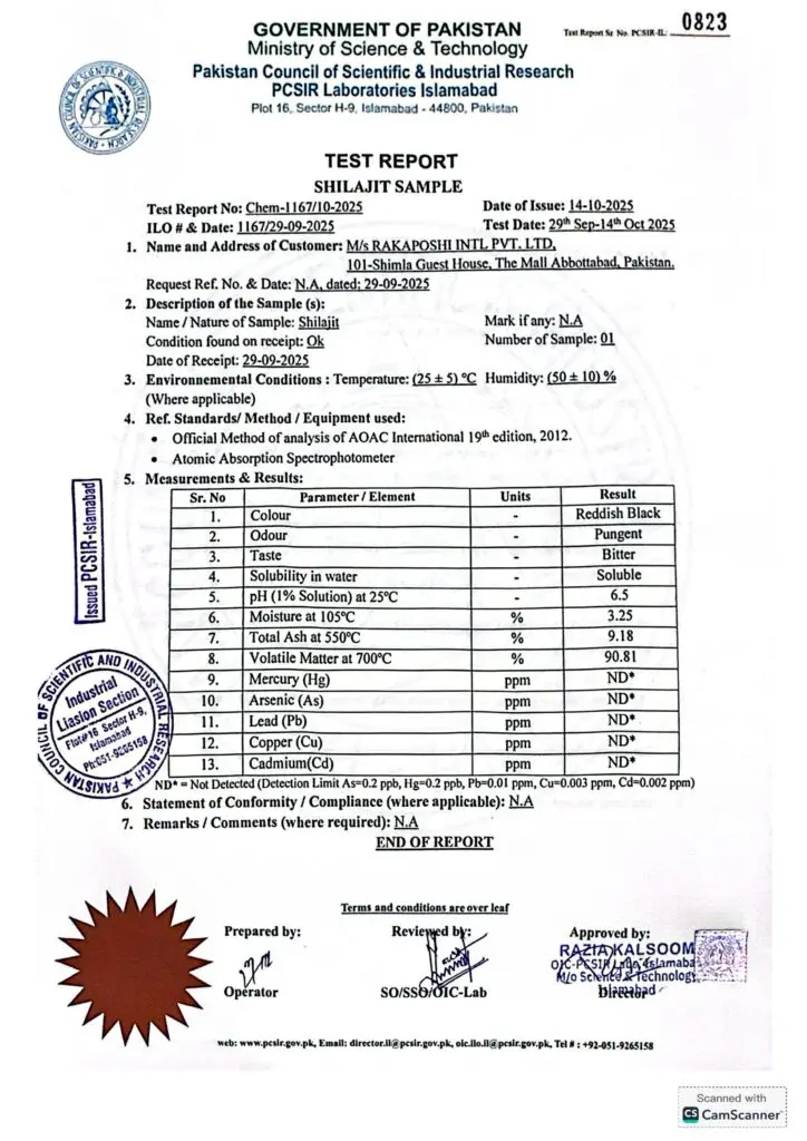 Our Himalayan Shilajit has been tested and verified by the Pakistan Council of Scientific & Industrial Research (PCSIR)